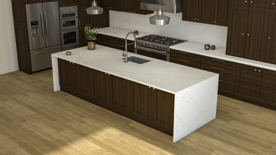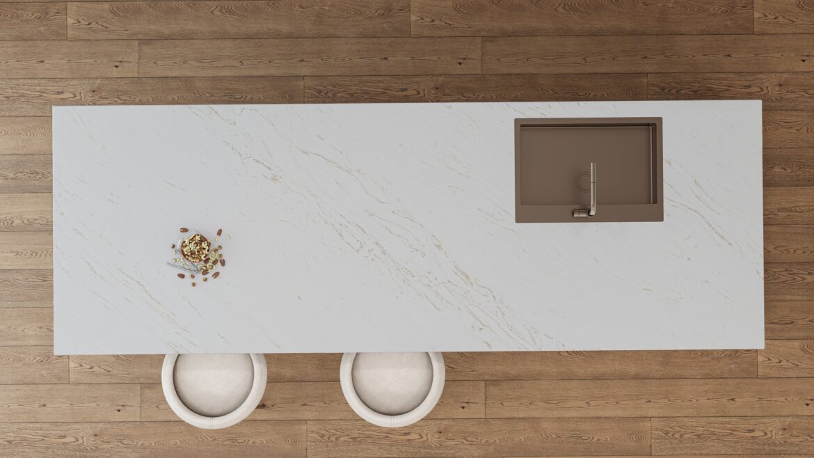 River Mist Gold® illuminates with a pristine white backdrop adorned by elegant, lustrous gold veins. These delicate, elongated lines weave a luxurious narrative, transforming the surface into a statement of refined opulence and timeless design.